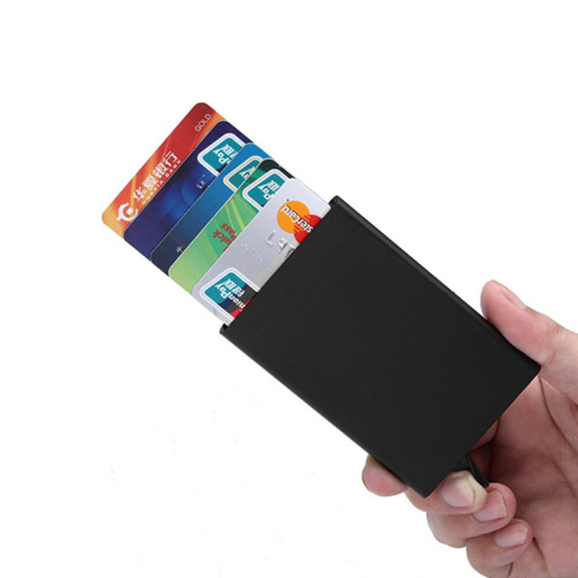 Présentation du porte-carte de crédit automatique Bohong en aluminium haut de gamme, méticuleusement conçu pour bloquer efficacement les scanners RFID indésirables. Ce portefeuille est équipé d'une technologie de blocage RFID de pointe, protégeant vos informations sensibles stockées dans les cartes de crédit RFID, les cartes de débit et les cartes d'identité, les protégeant ainsi d'un vol électronique potentiel.